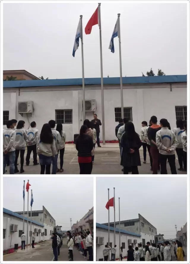 國旗及燈港照明的旗幟徐徐升起,恭祝燈港照明科技有限公司開工大吉!