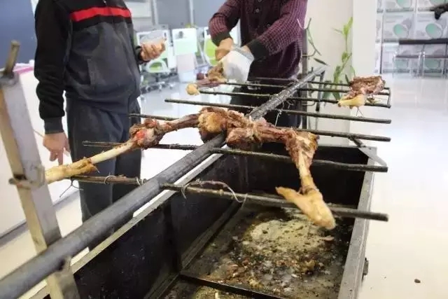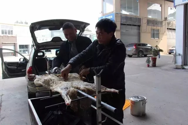 梁董說:“這烤全羊肉厚,多劃刀子,熟得快啊!”