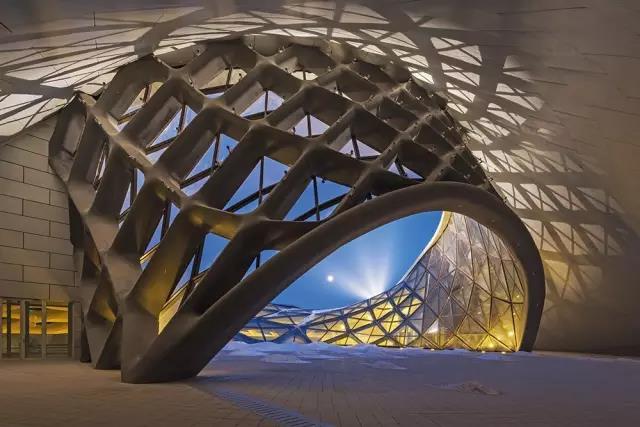 坐落在松花江北岸河濱濕地和寒冷的氣候中的哈爾濱大劇院,是一座流態式的建筑,擁有水晶般的純凈度和透明度。它因體現了人文、藝術和城市形象的交融,并與大自然和地形很好地相融合,成為文化島上的焦點。這座建筑為哈爾濱這座北國城市提供了國際化的范本依據,2016年被評為世界美建筑。
