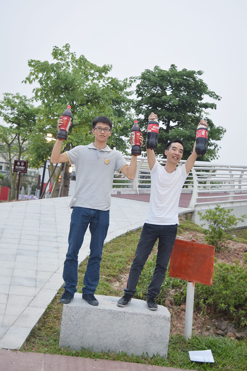 獲勝的藍隊隊員——陸工和王工舉起了勝利的果實。