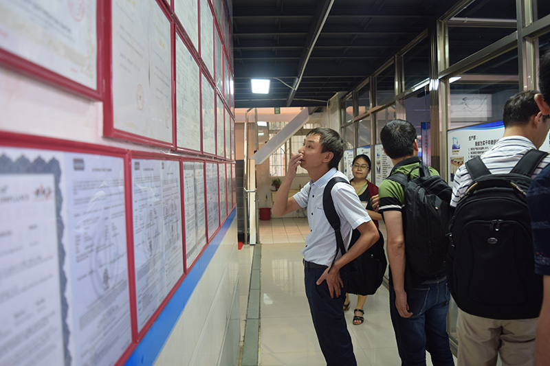 我司領(lǐng)導(dǎo)帶領(lǐng)客戶瀏覽我司環(huán)境與資質(zhì)墻