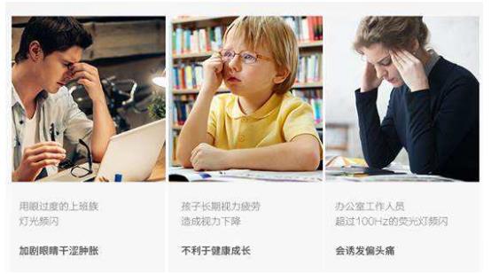 ? 如今用眼健康問題漸成為時(shí)下社會(huì)關(guān)注的焦點(diǎn)。此前一則央視報(bào)道,將劣質(zhì)LED燈的頻閃問題帶入了大家的視野,如果長(zhǎng)期使用劣質(zhì)LED燈,不僅會(huì)降低工作學(xué)習(xí)效率,久而久之還會(huì)加劇眼睛疲勞,造成眩暈,進(jìn)一步引發(fā)不可逆的視網(wǎng)膜傷害。
