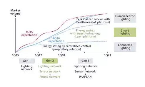 ? 數字照明的未來正在三個階段的轉型中成形(圖1)。轉變的形式為網絡照明、智能照明或HCL(也稱為健康照明)。截至2015年,這些轉型的領域似乎非常明顯,但現在有很大的重疊。