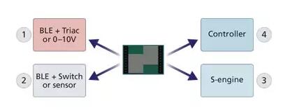 ? 下面舉一些無縫智能照明的例子,決策者看到后,會減少相應阻力,并加速智能照明的廣泛采用,如圖3所示。在美國,LED照明廠商可以安裝可調光驅動器來改善LED照明或繼續使用傳統的調光器,比如三端雙向可控硅或0-10V。使用現有的LED照明系統,可以添加BLE調光器或BLE智能調光器,以此替代三端雙向可控硅/ 0-10V調光器,這使得智能手機在住宅空間中能更加靈活地使用遙控技術。