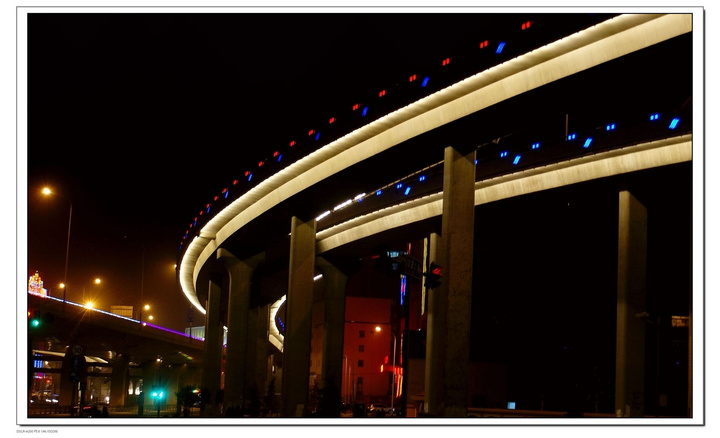 光的流動,燈的藝術與優美的橋身構建出一個有機的整體,在燈光的渲染下,使北園立交橋成為一個城市夜景建設中的一個亮點,它不再僅僅是一座橋,更成為濟南的一條大動脈,承載著城市的活力與精神,引導人們不停奮發向上,積極進取。