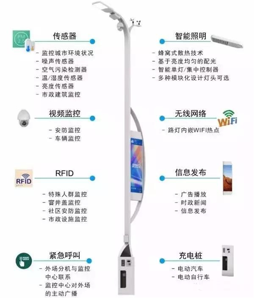 近期對路燈進行的大量調研資料后發現,如今,一些一體化燈桿已經集成了LED?照明、智能安防設備、微基站、WiFi、攝像頭、氣象監測器、LED交通誘導屏、充電樁等系統,還能將垃圾箱、窖井蓋監測以及更多的物聯網檢測設備集成進來,具備人流統計、環境監測、快速充電、信息發布、應急聯動報警服務點、太陽能充電等功能,甚至可以為共享單車停放、廣場舞擾民、施工工地噪音粉塵等難題提供有效解決方案。“路燈可被賦予的功效簡直太多了。”該人士表示。