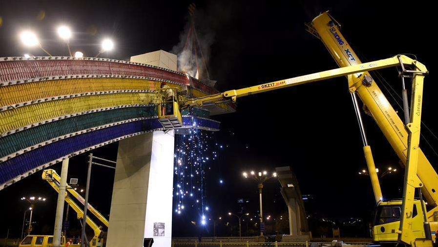 按照施工方案,彩虹門拆除重建工程包括拆除現有結構、基礎施工、鋼結構制作安裝和燈具設施安裝。為大限度縮短工期,新建彩虹門的鋼結構制作與現場基礎施工并行開展。工期方面,11月25日零時至12月4日,拆除兩座現有彩虹門結構;2018年1月16日前完成新建彩虹門鋼結構施工,2018年1月31日前完成裝飾及燈具、機電等設施安裝。