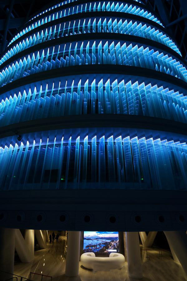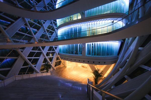 鳳凰國(guó)際傳媒中心建筑結(jié)構(gòu)特殊,充滿創(chuàng)意,是用一個(gè)具有生態(tài)功能的外殼將具有獨(dú)立維護(hù)使用的空間包裹在里面,體現(xiàn)了樓中樓的概念。兩者之間有許多共享公共空間,公共空間有臺(tái)階、景觀平臺(tái)、空中環(huán)廊和自動(dòng)扶梯,使得整個(gè)建筑充滿動(dòng)感和活力。